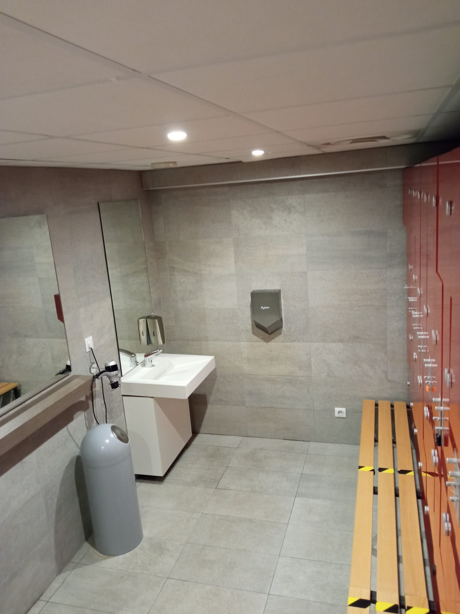 - Deux espaces vestiaires avec douches individuelles et casiers-vestiaires.